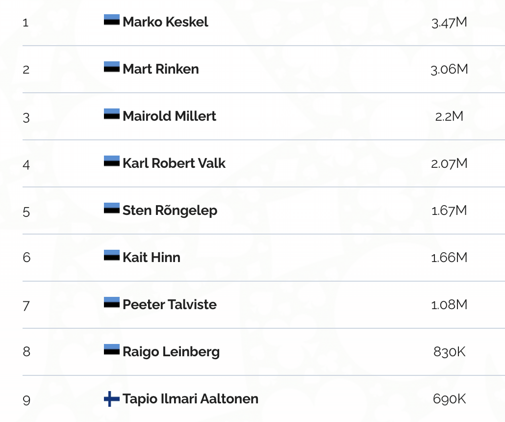 Diilerid on samuti tasemel. Näiteks Sten Kramer sai sarnaselt Kaidar Viikmanile kohe turniiri alguses ässade pocketi. Võimalik, et selliseid õnnejunne on veel.