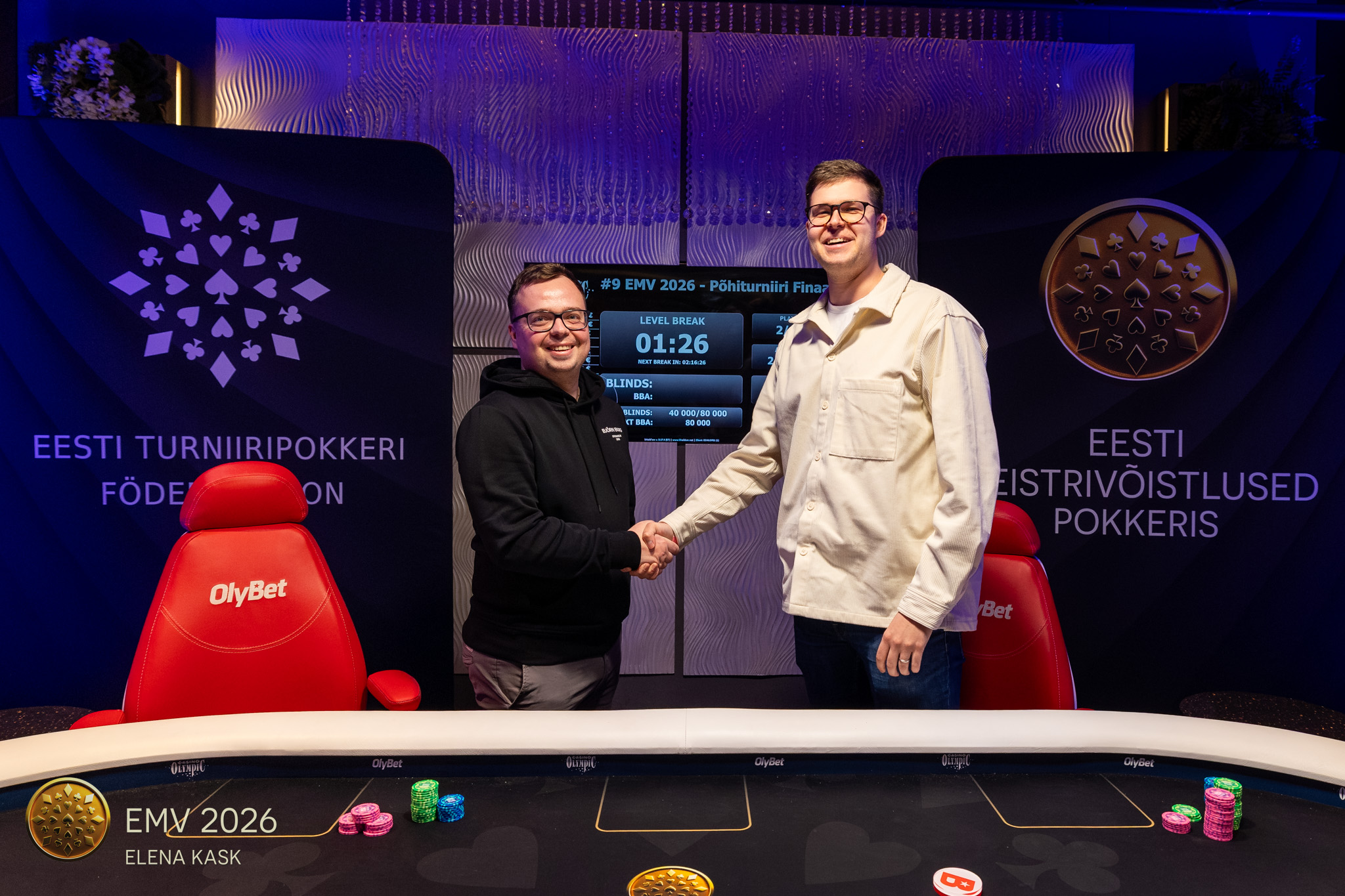 Blindid 40 000 / 80 000, ante 80 000. Justnimelt, loeti õigeti kahe mehe vahelisel lahingus mängitakse BB antega. Tavapärasest ehk pisut erinev.