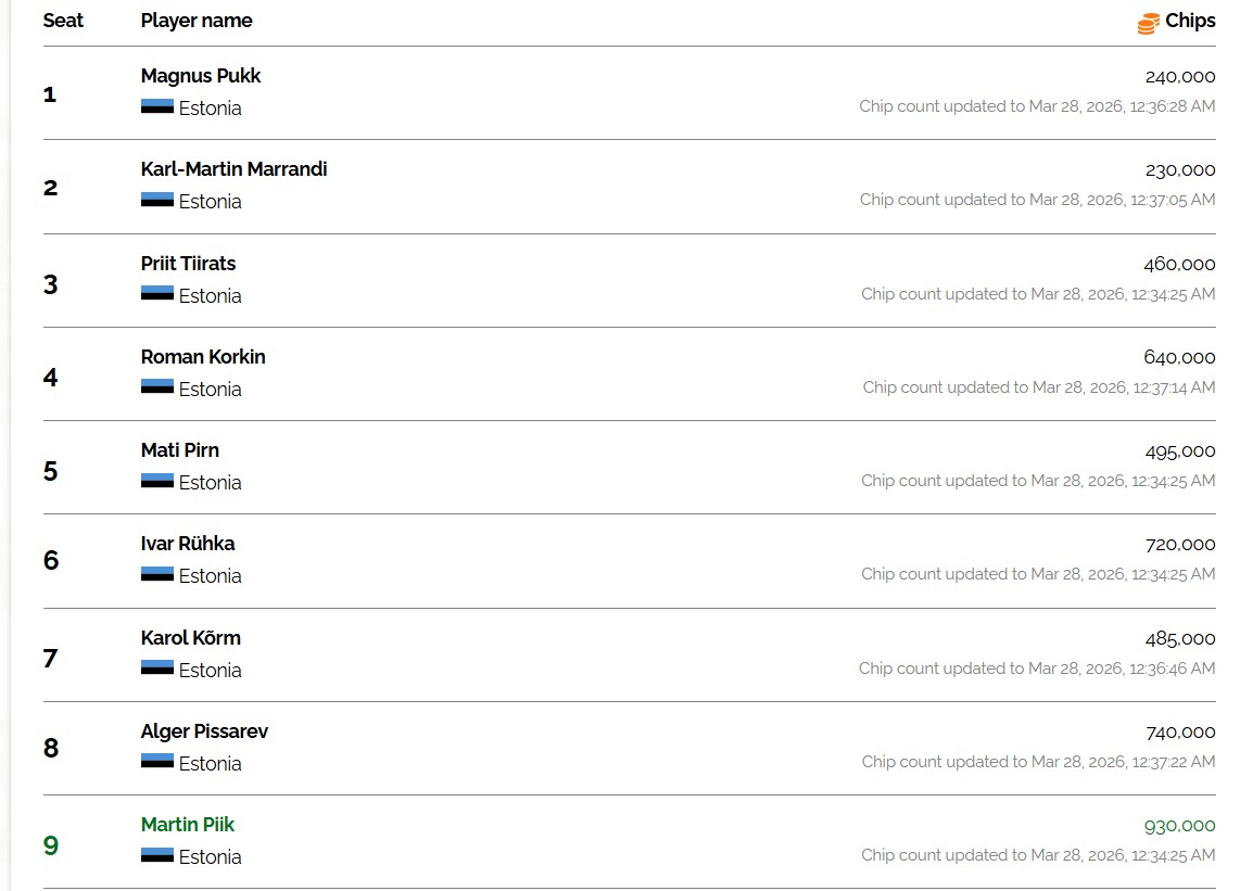 Täpselt nagu enne turniiri laua loosimise järel kirjutasime, näitab chipliider Martin Piik väga hästi, miks on suur stäkk finaallauas nii võimas relv – surve avaldamine tuleb lihtsalt loomulikult.