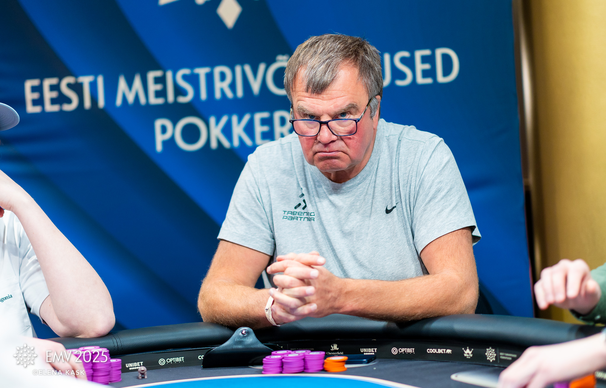 Urmas Randma paneb preflop oma viimased 60 000 panka ja kiire calli teeb heas hoos olev Alari Reinas BB peal olev Tarmo Tammel mõtleb veidi ja tuleb ka kaasa.