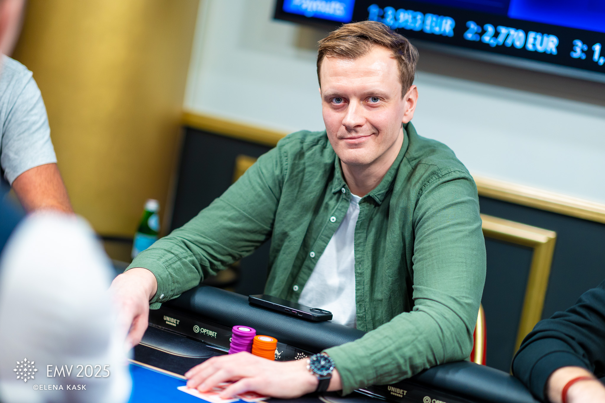 Rahad pannakse sisse juba preflop, kui Sten Laumets avab ja small blindilt tuleb allin, mille hõikab välja Sander Kukk.