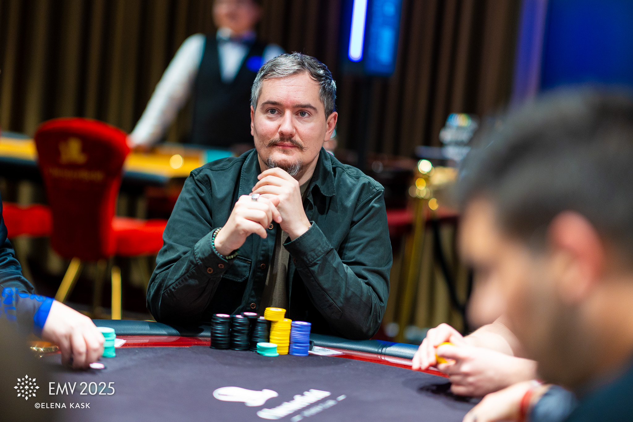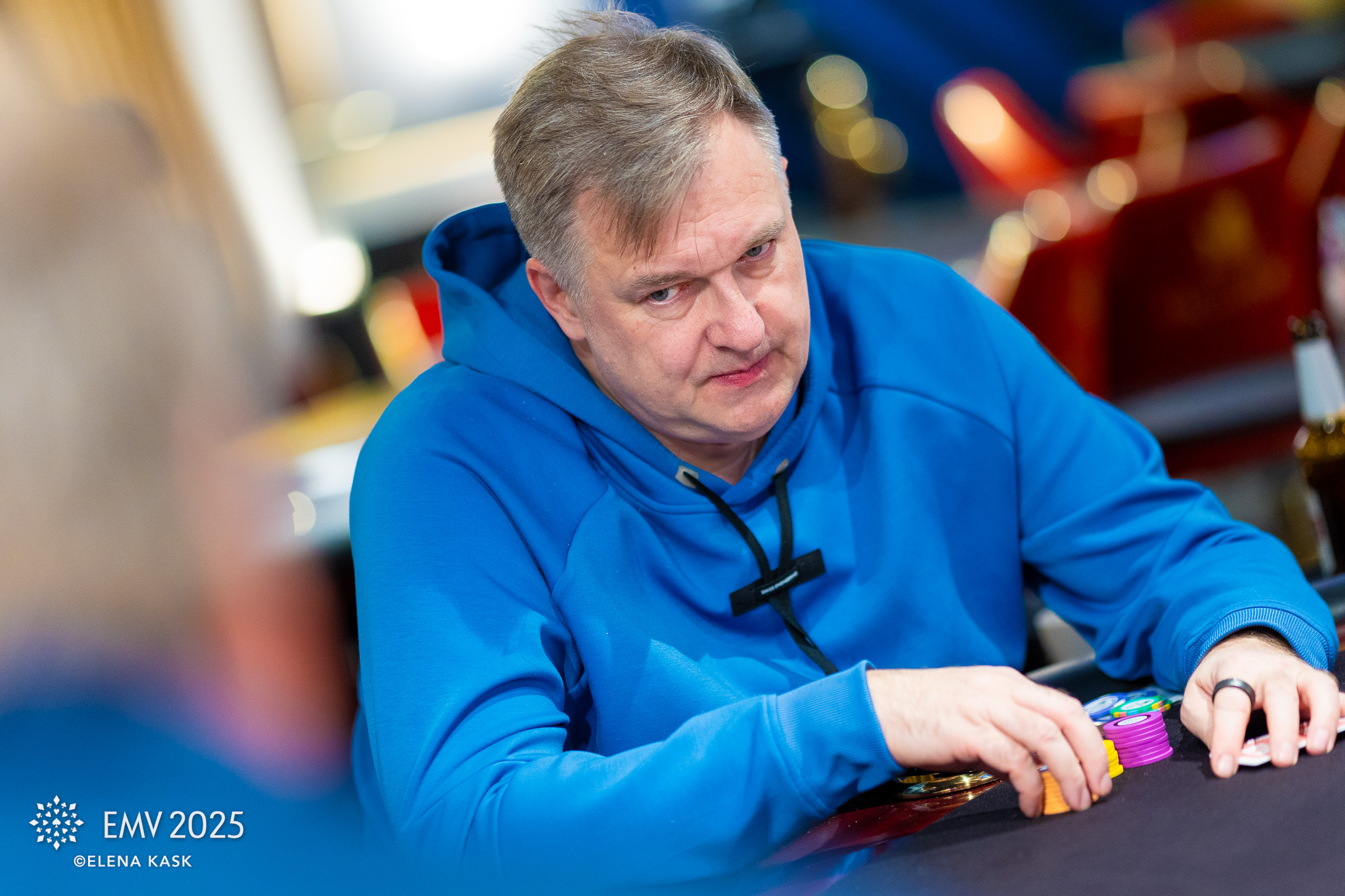 Kairit Leibold tunneb juba igavust. Tema lauda on sattunud mängijad, kes pokkerit väga tõsiselt võtavad. Hetkel on kõigil sisse kasseerimata ka tervitusjoogi žetoonid, nii et ehk tasub tagasihoidlikkuse põhjust sealt otsida. Liis Rogov pakub, et Kass võiks jutuajamisega ise algust teha.